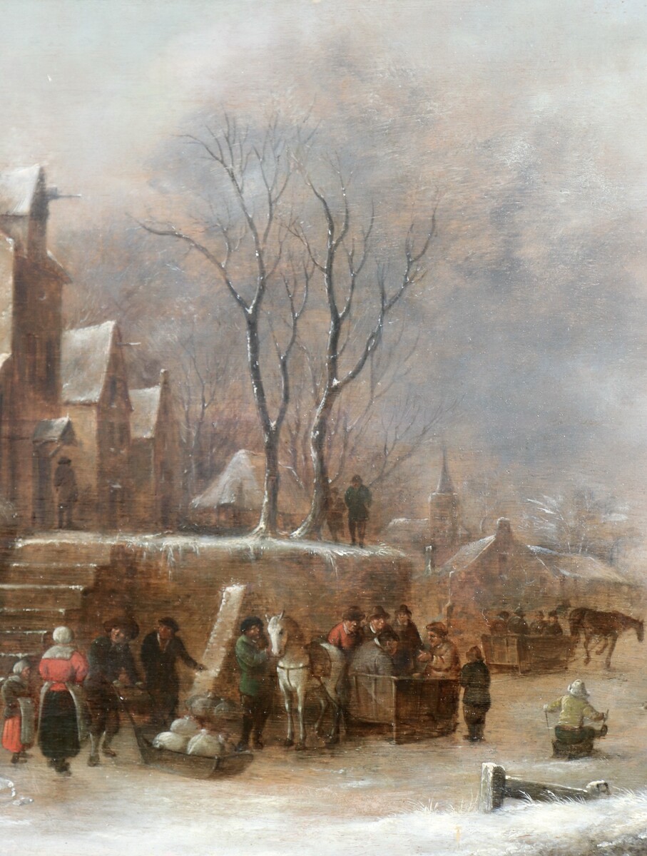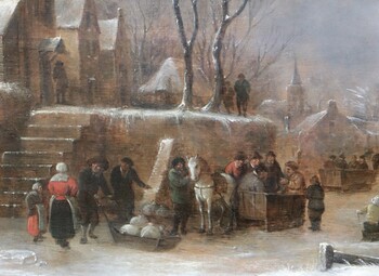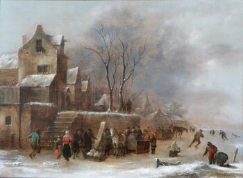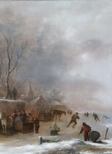Seventeenth century Dutch winter landscapes can be divided in several categories according to the emphasis stressed by the painter: did he go for anecdotic, Flemish-inspired genre scenes or for a naturalistic, atmospheric, sober, sometimes monochrome approach or of course for a blend of both.