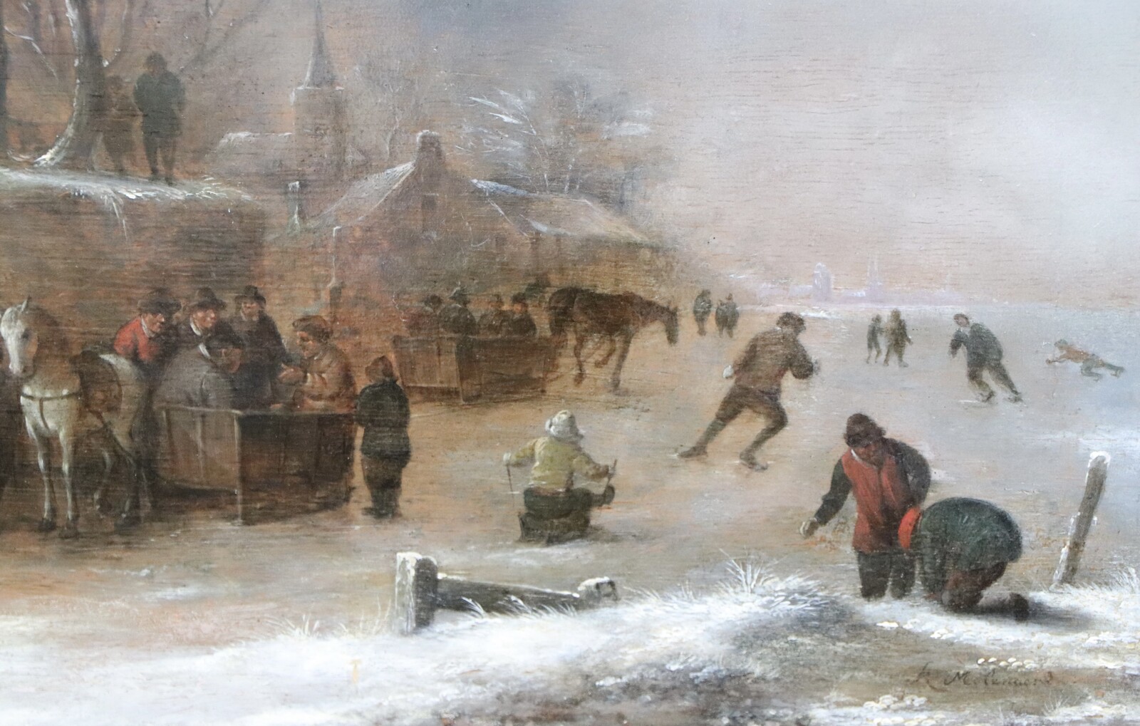 Klaes Molenaer’s winter landscape served as an example for many Romantic,19th century Dutch, German and Belgian painters who endlessly ruminated his art.