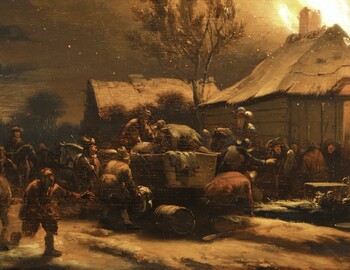 In 1623 Esaias van de Velde painted a battle scene at night round a burning building, in 1637 Rotterdam-based Willem Viruly II painted a nocturnal fire scene with plundering soldiers.