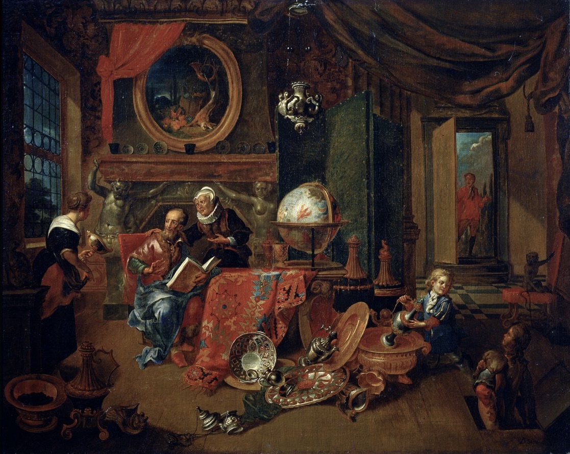 A closely related, fully signed (“D. SMOVT”) composition of similar dimensions with a rectangular painting behind the couple was sold at Sotheby’s New York, 3/10/96