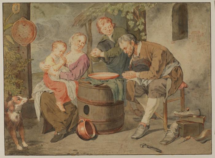 Black and red chalk and watercolour on paper : 313 X 231 mm