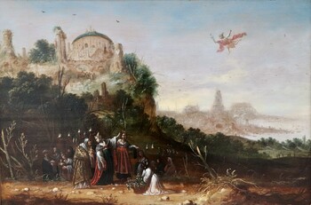 Rombout van Troyen was the Amsterdam specialist of highly atmospheric, narrative, almost operatic, Italianate cavern interiors. Our painting dates from his early years, when he painted these rare Italianate scenes. Its mythological subject was taken from Ovid’s metamorphoses.