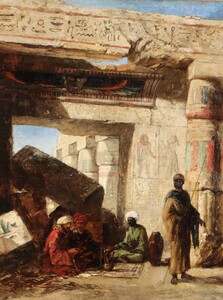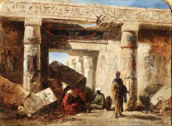 Shortly after his return in the UK, Müller left Bristol and settled in London in late Autumn 1839, where he exhibited regularly. He set about completing paintings from sketches he made during his long Egyptian journey. These scenes of Egyptian streets, markets and monuments proved especially popular.