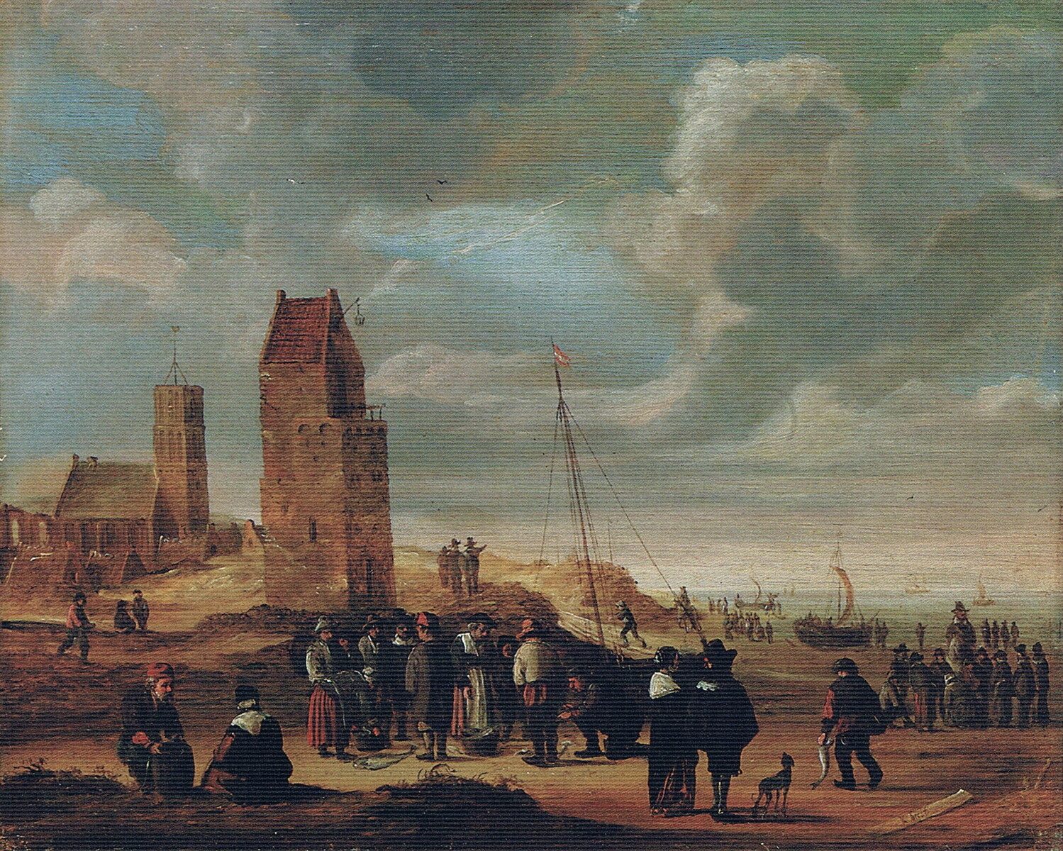 A view of Egmond aan Zee with fisherfolk on the beach