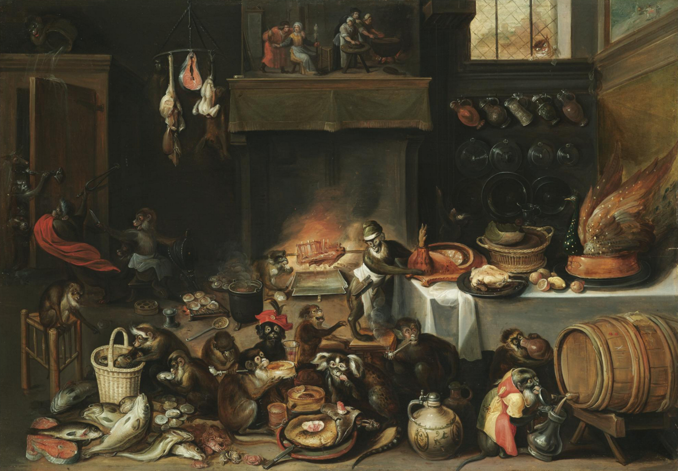 Apes celebrating in the kitchen
