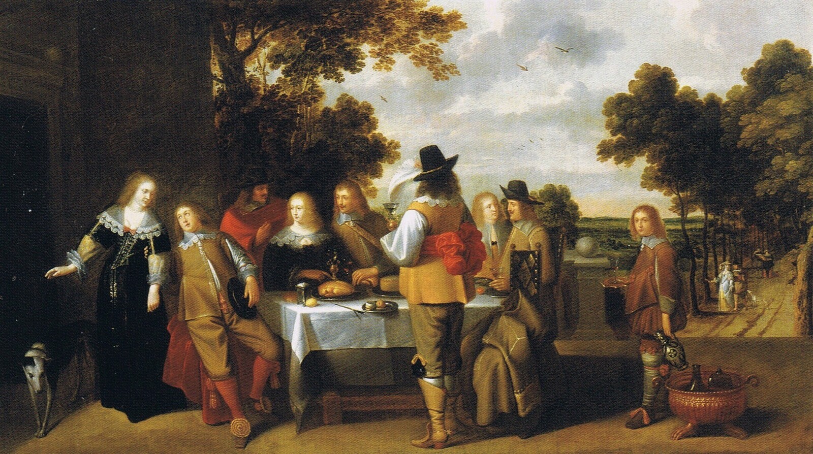 Elegant company eating and drinking on a terrace