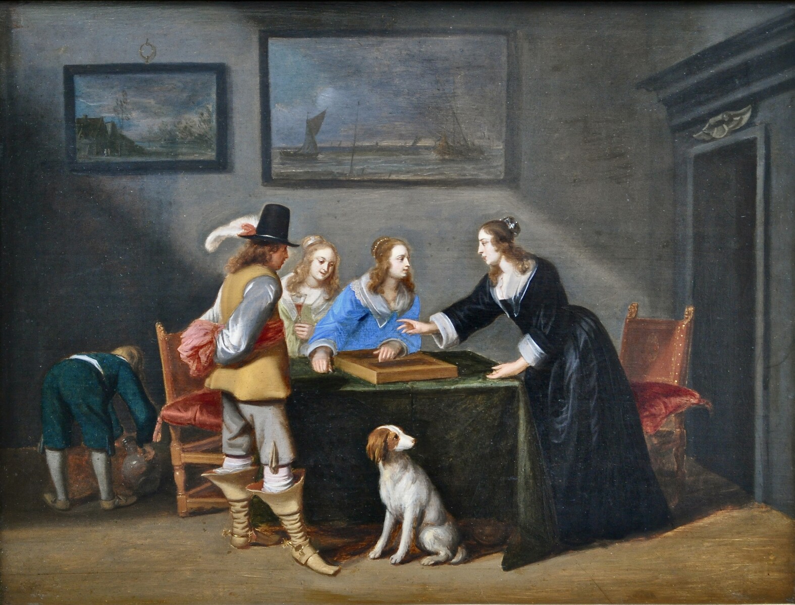 An elegant company playing backgammon