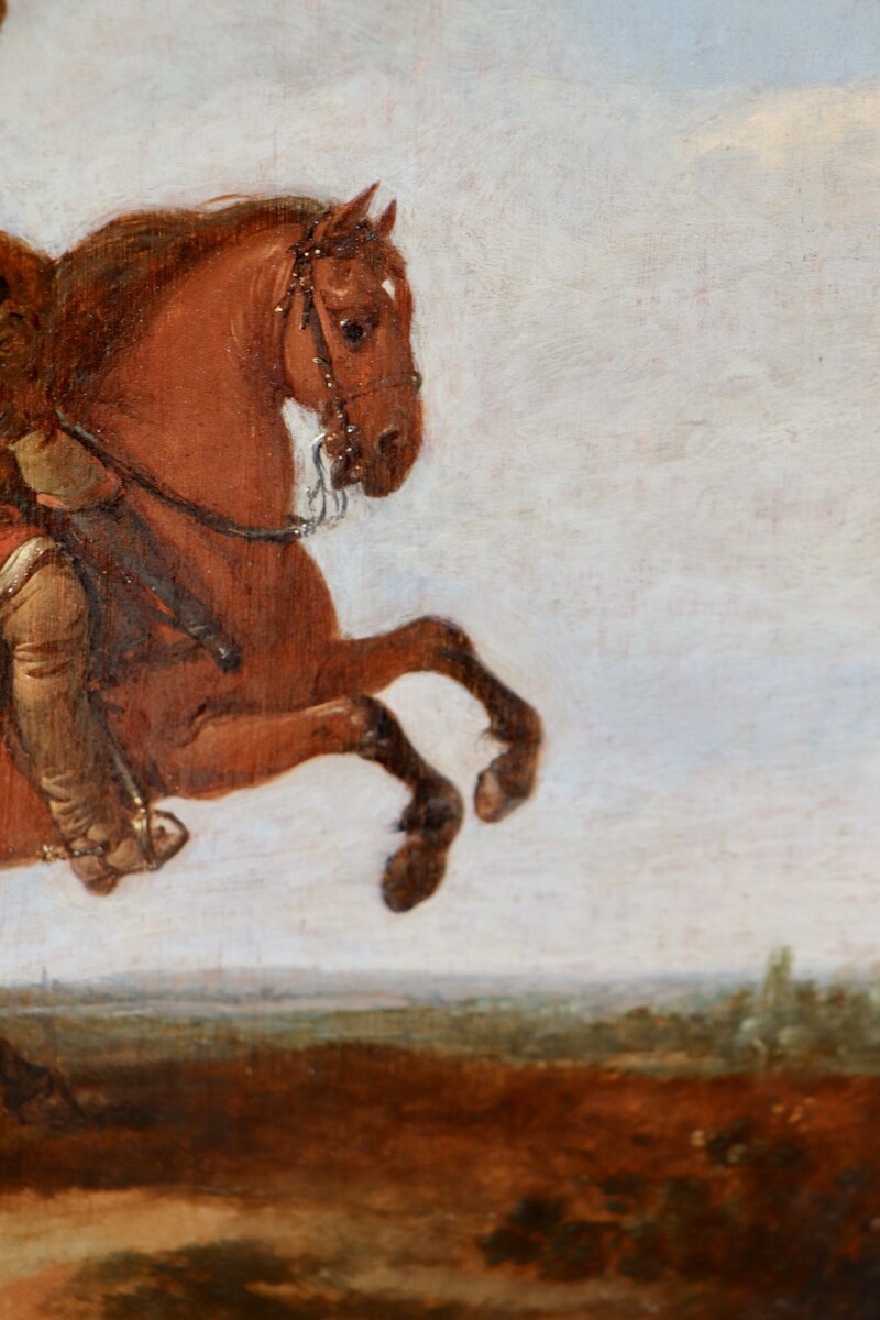 Jan Martsen had one pupil: Jan Asselijn. He studied with Jan Martsen in Amsterdam. His earliest paintings, from 1634 and 1635, are battle scenes, showing the strong influence of his master. Asselijn subsequently dropped this subject, only to paint it briefly again around 1646, when he was active in Lyon and Paris, before returning to Amsterdam. Asselijn is foremost known as an important Italianate landscape and genre painter, a ‘Bamboccianto’ active in Rome between circa 1635 and 1644.