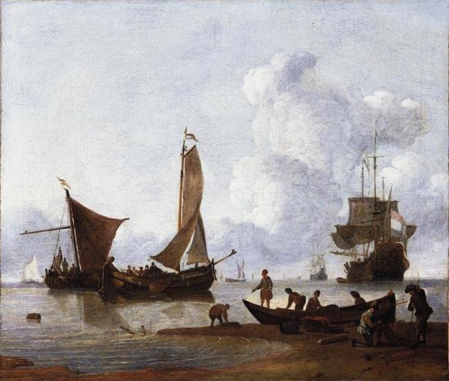 Fishermen unloading their catch on the shore