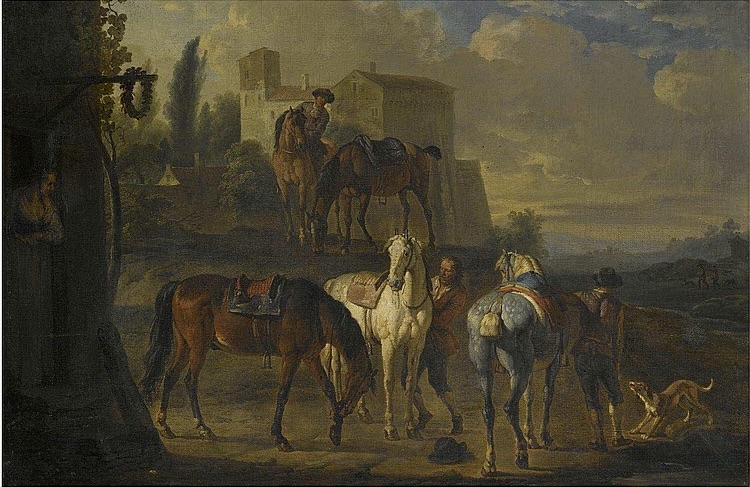 A cavalry party halted before an inn