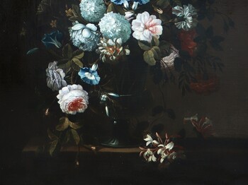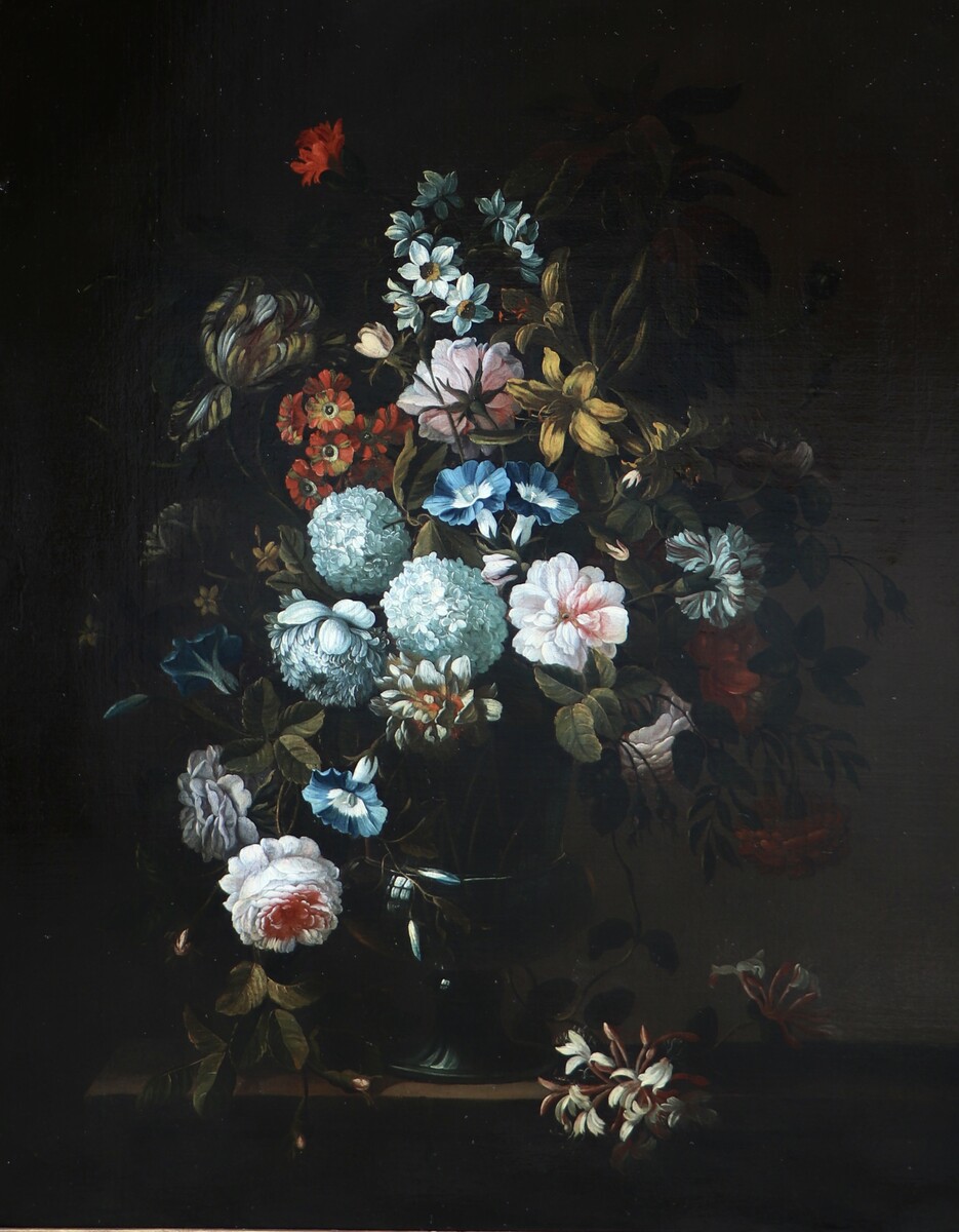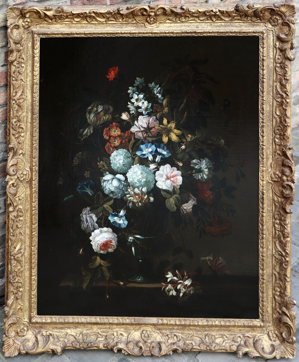 Hardimé was born and trained in Antwerp, but he spent the major part of his life in London. Here he adapted his style to that of Jean-Baptiste Monnoyer I, who had recently passed away, but whose style remained very popular in England. Hardimé painted magnificent bouquets of ornate flowers in brilliant colours. Our painting dates from his English years.