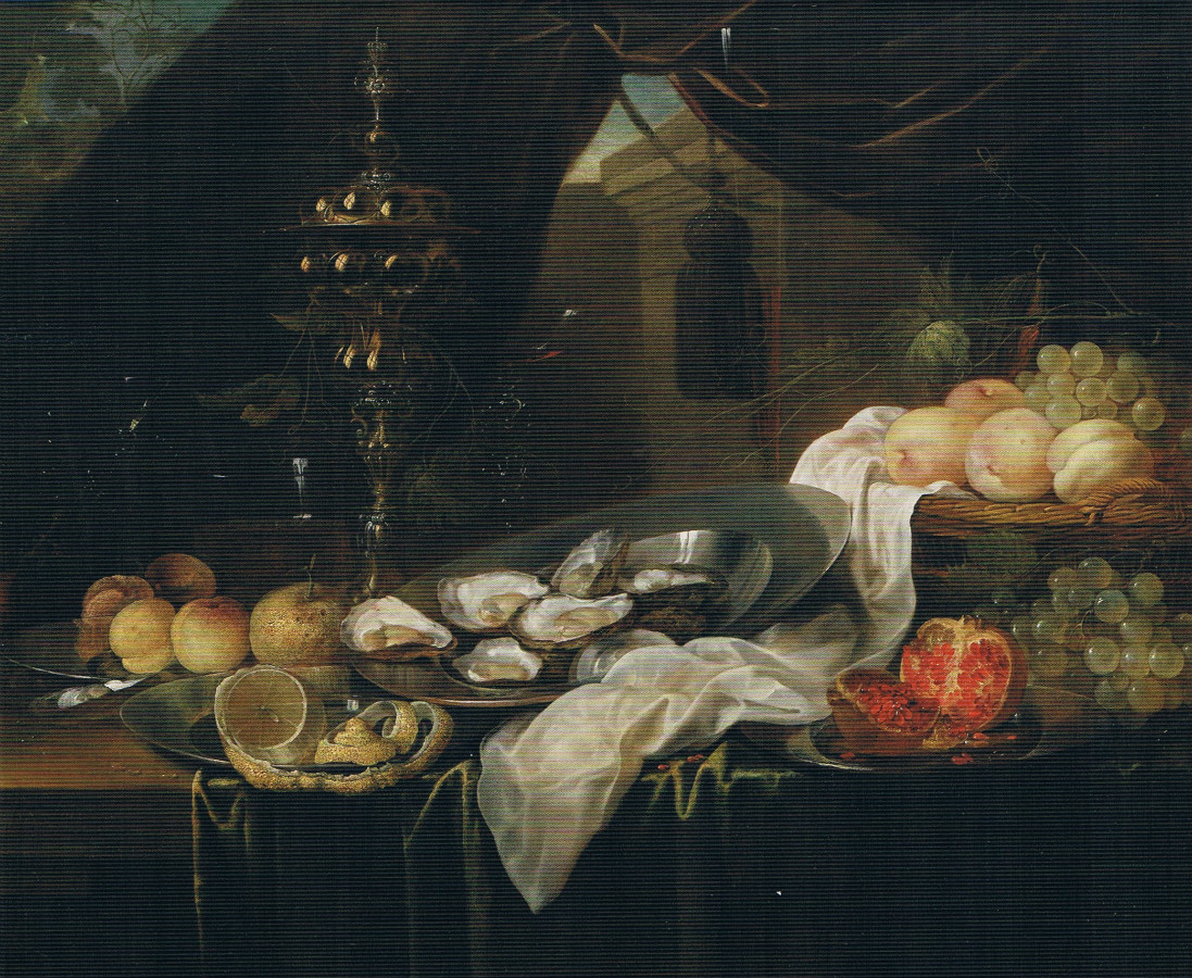 A still life with a pokal, Façon-de-Venise glasses, fruit and oysters